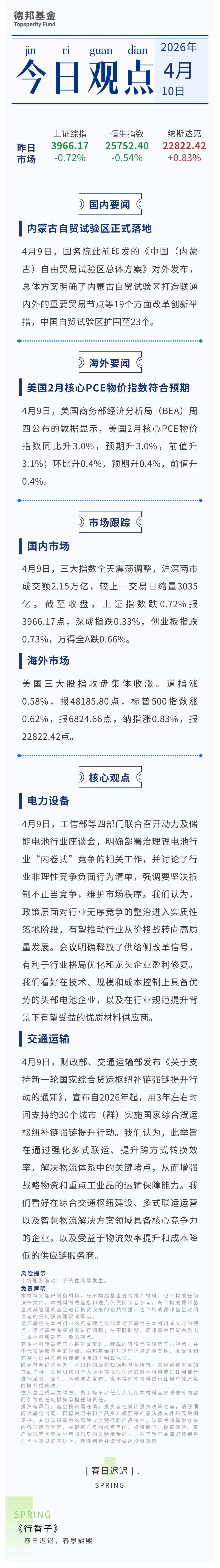 4月10日财经速递,带您最快跟踪板块表现和市场资讯!