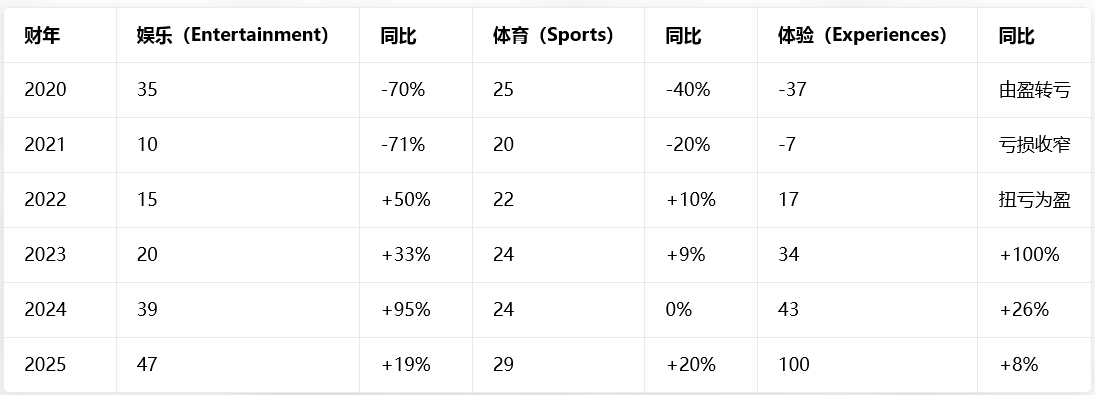 三大业务板块2020-2025财年营业利润数据: