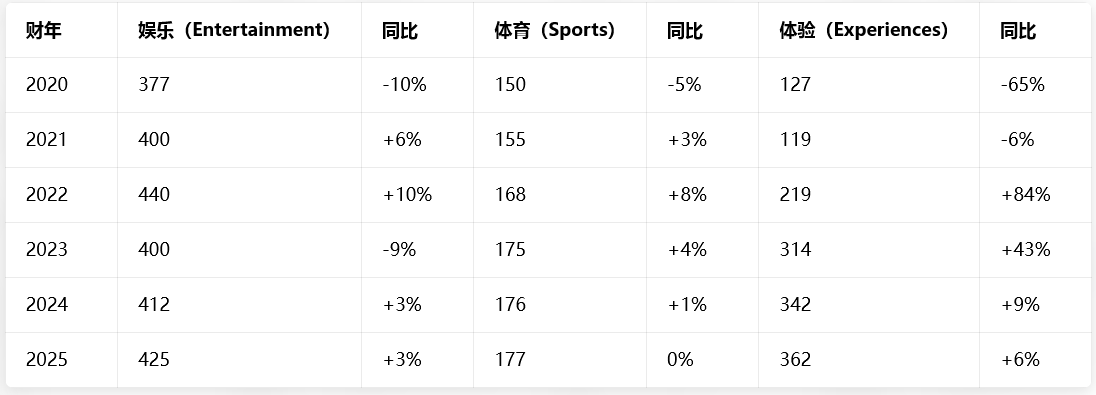 三大业务板块2020-2025财年营收数据: