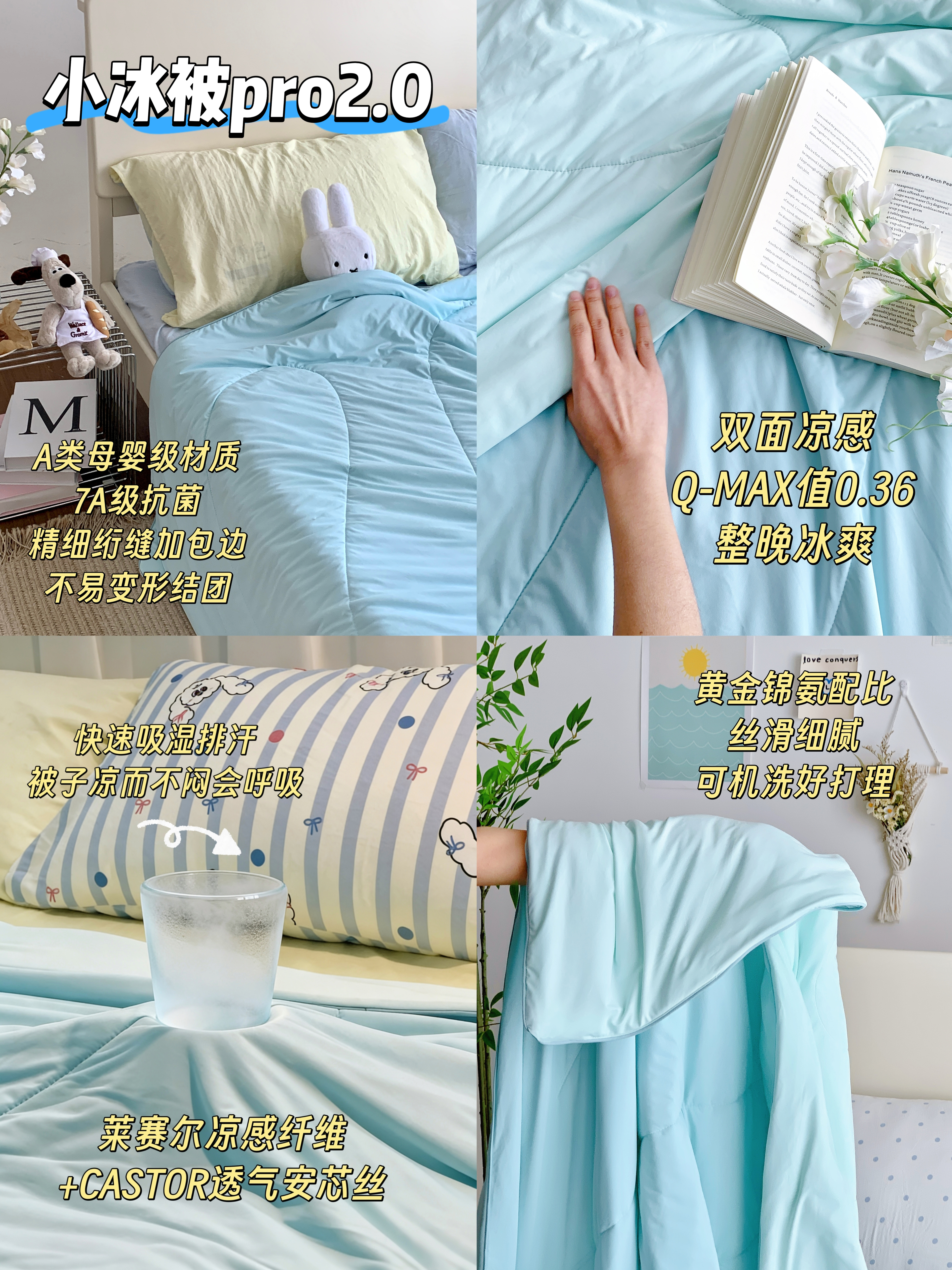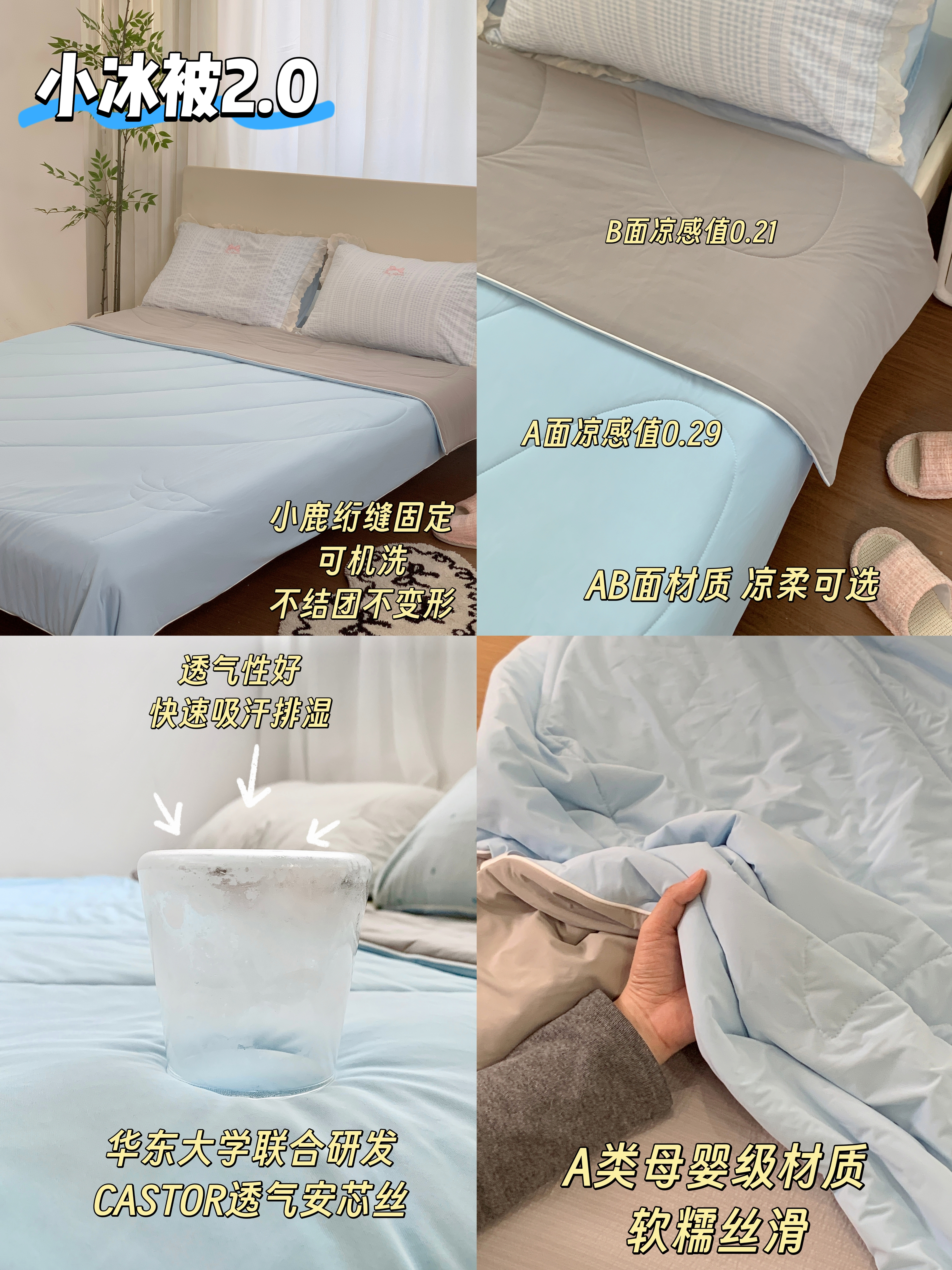 ✅ AB双面睡感:A面凉感降温(Q-Max值0.29,近国标2倍),B面亲肤软糯。一被两用,空调房随意切换。