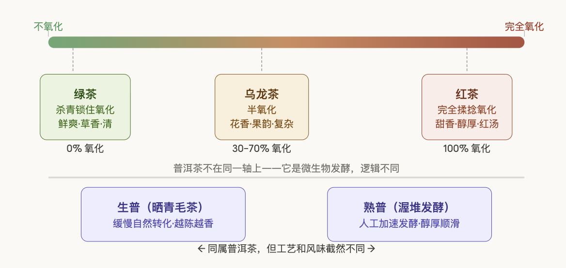普洱茶曾被归类为黑茶类,现归类为再加工类中的后发酵茶。