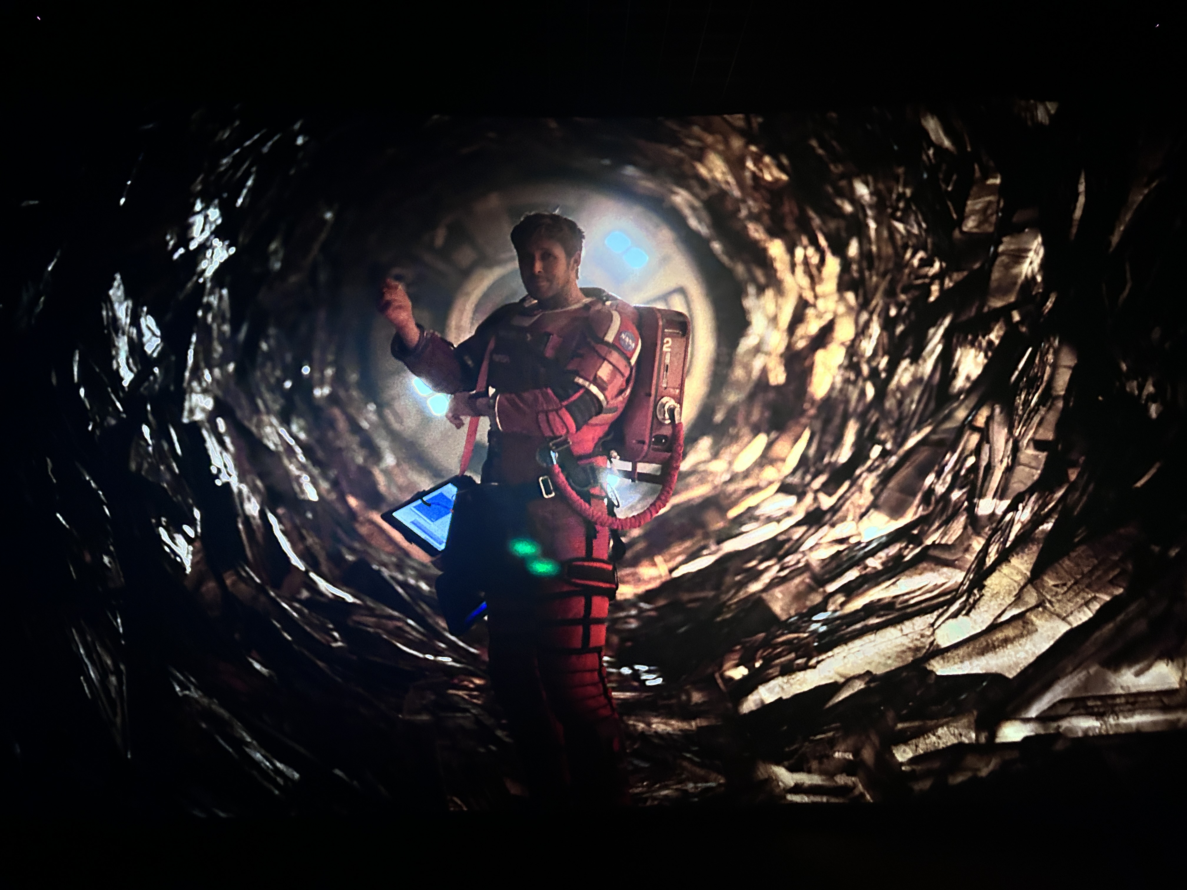 Grace刚出场的时候真的太耶稣了,不过看名字就知道了恩典的意思,Grace窝囊废的设定引入再到勇敢去抢天仓座的收集器前后的对比真的让人动容,奇异场景大银幕看也非常美丽了,这种宇宙寂静加上双主角友情小幽默的线真的是软科幻爱好者的心头好,准备入手原著书看看了。挽救计划没人犯蠢,没人说大话,没人谈恋爱,但你会在俩人任务完成在宇宙开party时,发现深刻的友谊,格雷斯给洛基带了宇宙救星的手绘帽子,在模拟地球的大银幕上放烟花,会在对方醒来的时候隔着玻璃罩给一个大大的拥抱。洛基贴到玻璃罩上的时候,真的好像我的猫用头蹭我拳头表示友好。还有他俩在洛基飞船相聚的时候,在海滩上洛基靠着格雷斯的时候非常治愈了,洛基想尽一切办法让自己捡来的人类在波江星过的舒适些。别看洛基是外星生物,它的真实感是我在银幕上见到给夯的。导演组为了追求真实,拒绝滥用绿幕,真的搞了一台全尺寸的飞船布景,甚至连“洛基”也是实体木偶机械操控的,而且多个镜头直径了莫比乌斯的漫画中的隧道洞口,还有2001太空漫游,科幻加漫画迷真的很惊喜。电影中,船上EVA唱了《sign of the times》是人物成长的高光时刻,她借这首歌让船上的人知道,自己相信他们,在乎他们,也相信一切会没事。等这层情感传达到了,她又立刻收回去,重新变回那个冷静,高效,只谈人物的人。现场很多演员都不知道她将怎么唱,所以最后呈现的大家的反应和表情都是真实的。而促成这件事的是男主瑞恩高斯林4,偶然在片场听到桑德拉惠勒的哼唱像导演力荐的。而高司令这次hot nerd 的形象,眼镜加持很大,是因为小女儿来片场的时候说了一句,爸爸戴眼镜看起来聪明些,经典的手朝下手势,也是因为有一次高司令带女儿去卢浮宫玩,女儿觉得很无聊出来的时候,说这个博物馆是这个,然后狠狠的比了个手朝下的手势。这个变成了他的灵感成为了和洛基互动的影史经典了。挽救计划将于十九号下线,想去感受治愈浪漫幽默科幻的朋友一定要去银幕看,就像电影里,格雷斯看到天仓星的绝美场景时停住在太空感受,洛基看不懂,问他在干什么,他说了一句,having the moment。