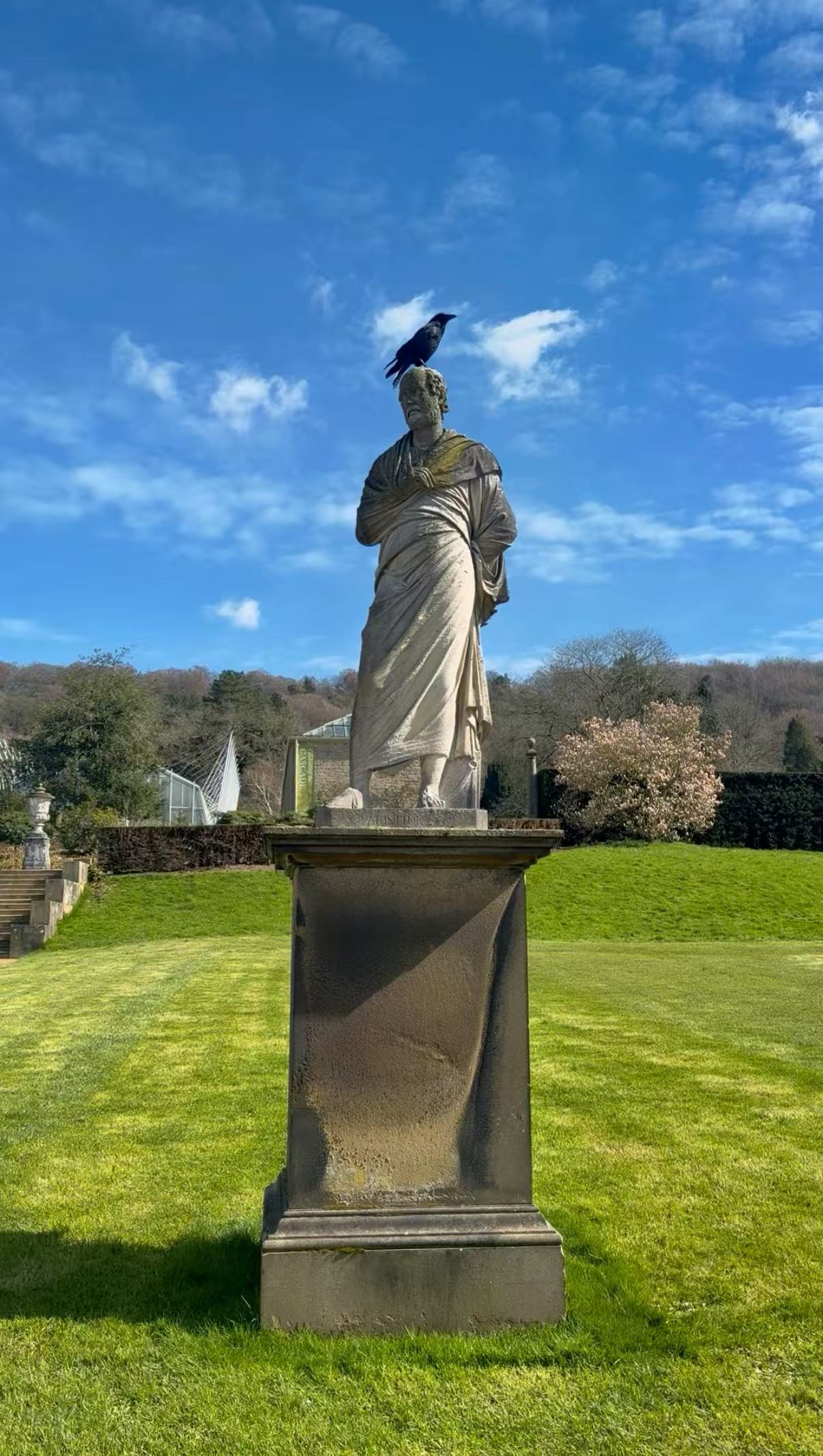 无意看到一只乌鸦落在不知名雕塑头顶,令我想起“鹊起之鸦”: