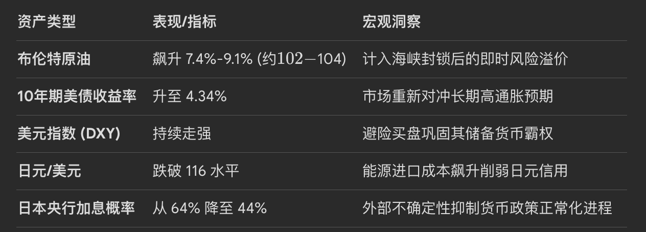 然而,在宏观层面,日元跌破116关口正迫使日本央行(BoJ)面临极度困难的决策。根据最新市场定价,日本央行在本月加息的概率已从上周的64%骤降至44%。以下是周一开盘后的关键资产表现: