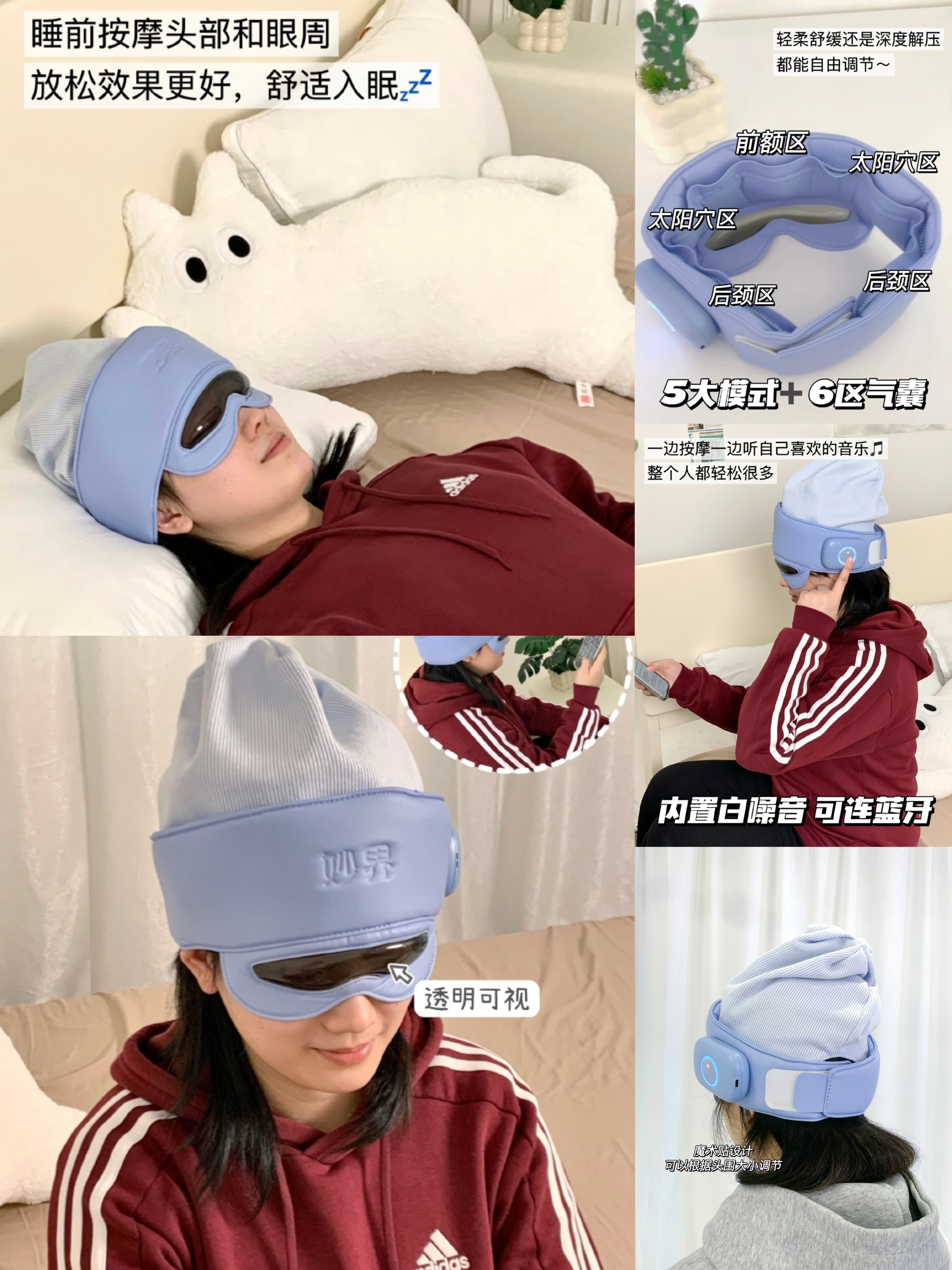 睡前按摩一下,太好使了,本来以为缓解头疼,没想到还管失眠,终于能睡个安稳觉了。而且无线设计,在家,出差都能用,很方便!超适合熬夜党、打工党和学生党,如果失眠或者偏头疼也可以入手试试~