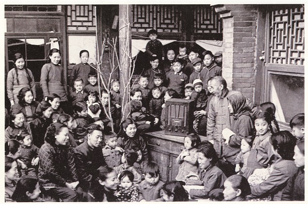 🔺 北京市民在收听宣传《婚姻法》的广播