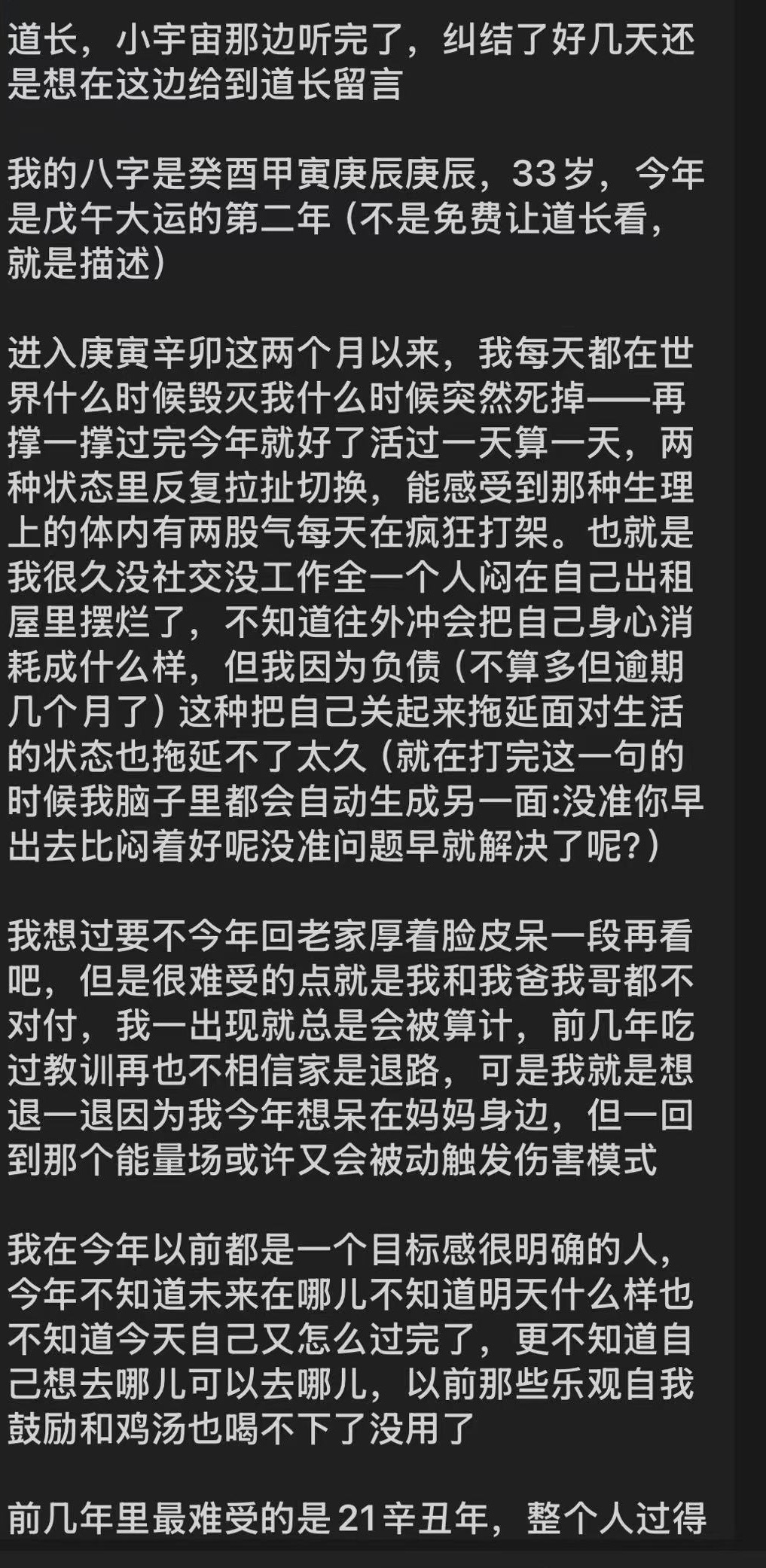 道长您好,非常有感触,也很感动于您无偿帮助这些在困局中的朋友