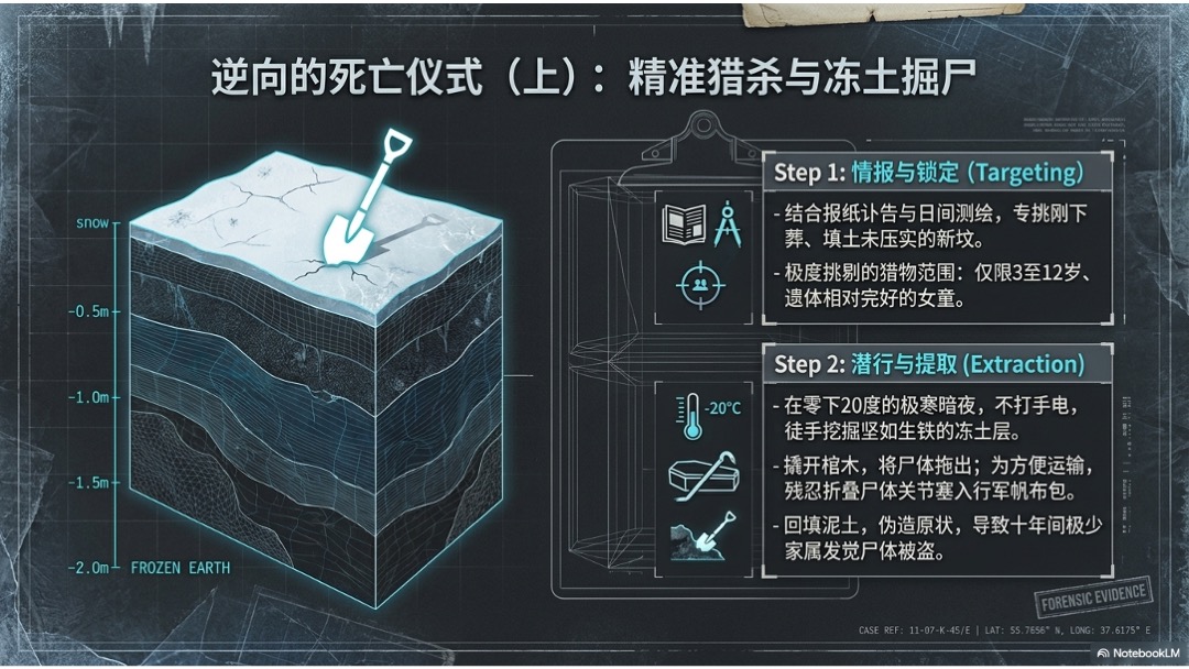• 冻土、新坟、深夜、塑料布、撬棍和帆布包,这整套流程说明他早就把犯罪当成了工程。