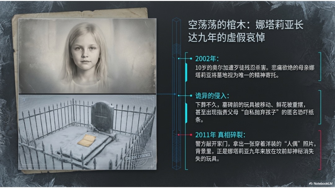 • 当警探把照片放到桌上,说出“你女儿的坟墓是空的”那一刻,所有哀悼都被撕碎了。