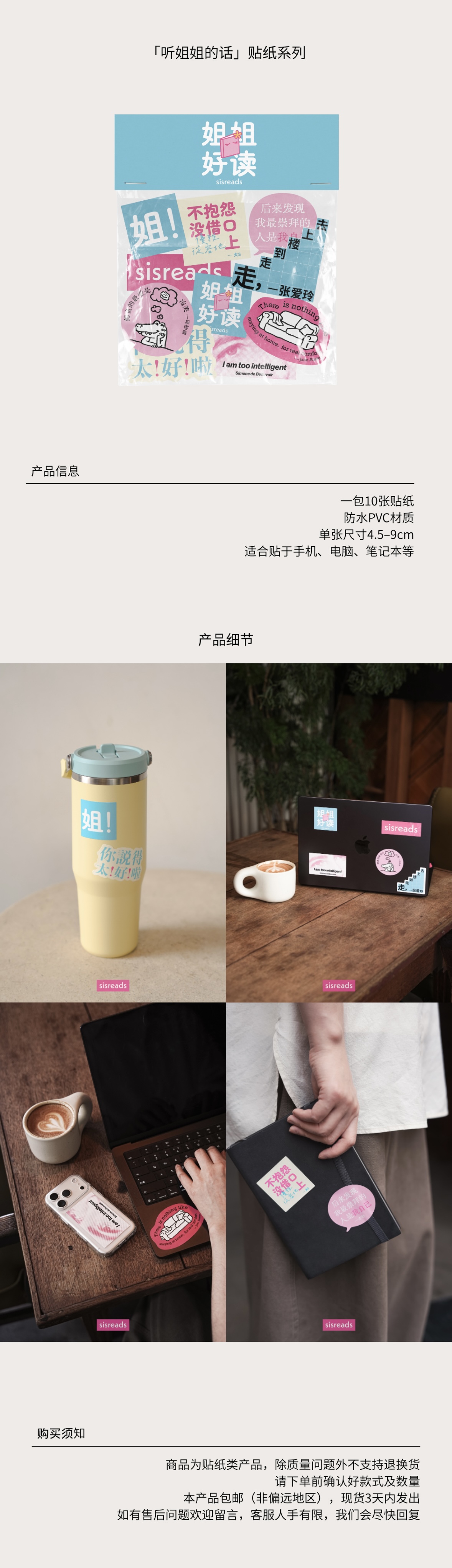 姐姐好读的两周年周边贴纸「听姐姐的话」已在姐姐好读sisreads小红书店铺上线!
