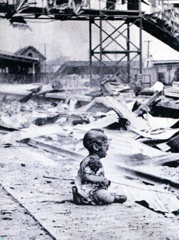 在他面前,一颗炸弹轰隆一声炸碎了月台,他可能受到了惊吓。当然,一个两三岁的小孩子面对着死亡,谁不会被惊吓呢?这时他身边已经没有人了,他的父母极有可能已经在日本的枪林弹雨中倒下了,只剩下她一个人孤零零在这里,没有希望,没有依靠。