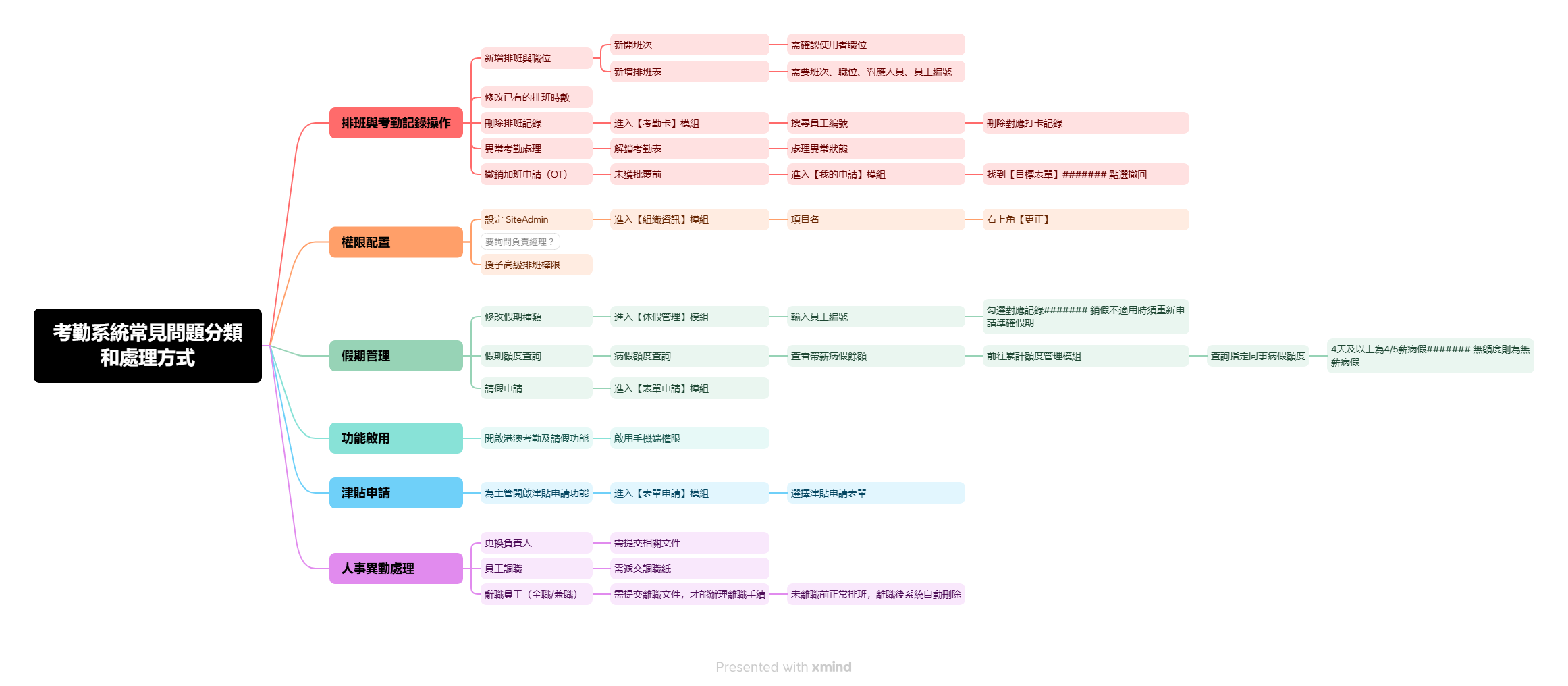 排除掉任务和个体差异,多出来的时间我用来先去思考该怎么解决问题、做思维导图、不断优化流程、主动做常见问题和解决方法汇总(方便我自己遇到问题解决,对后面接手的同事也有帮助,对整个考勤系统来说也算是在梳理和搭建 SOP。本质上说我不想仅仅是个机器)等。