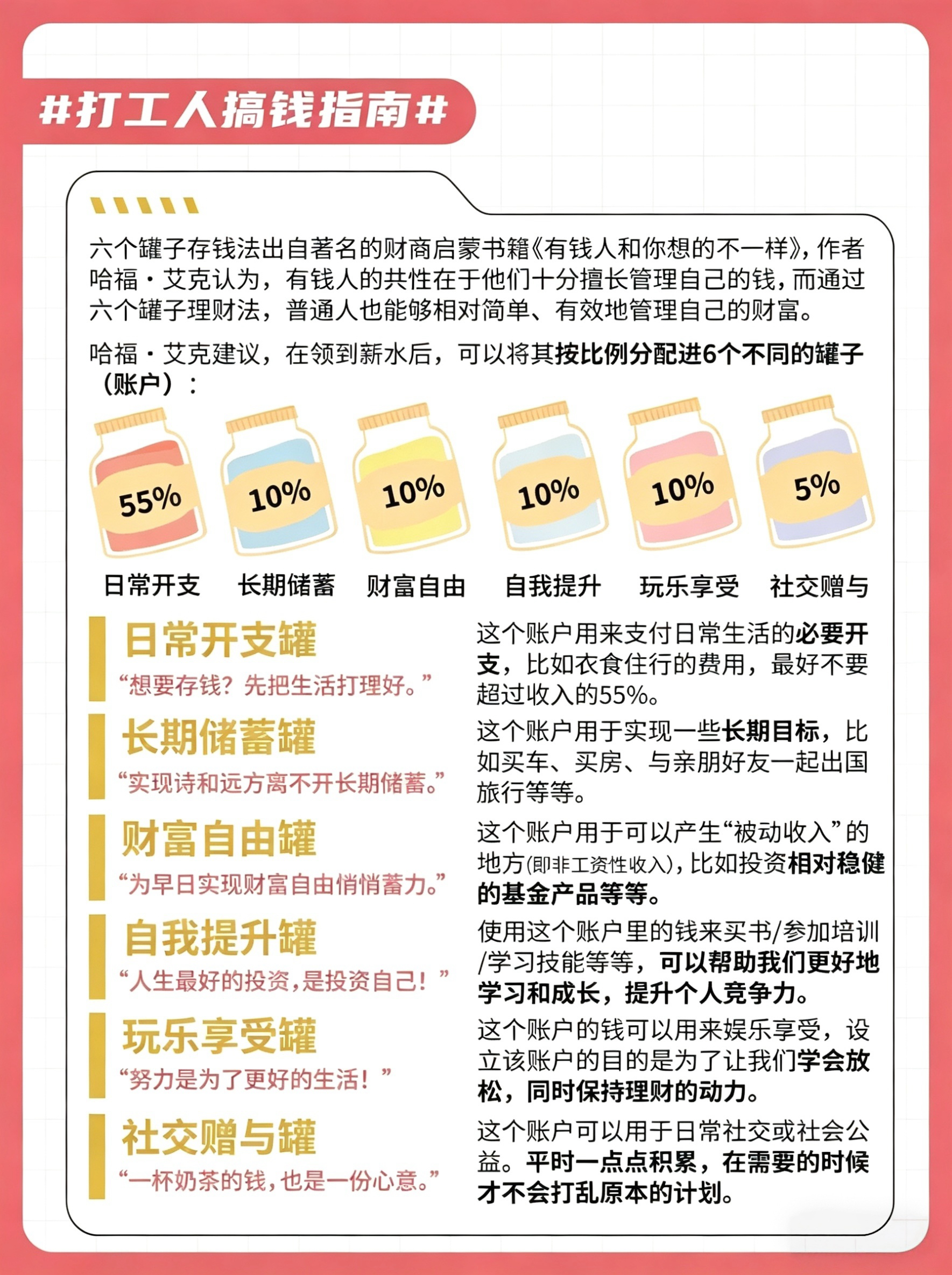 |金钱管理:收入如何分成 6 个罐子,告别月光与内耗?