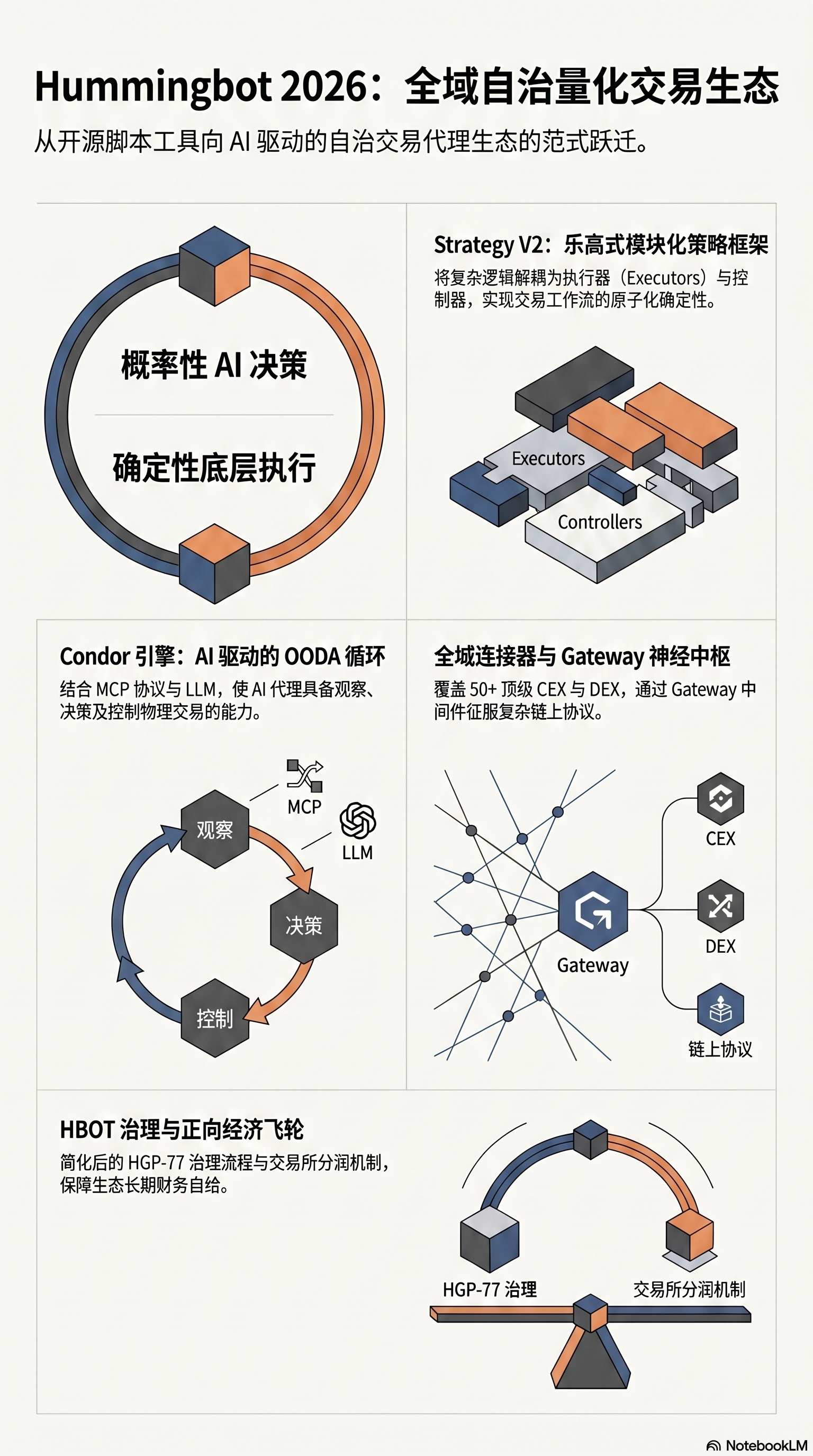 然而,开源力量正在彻底重构这一微观结构。Hummingbot 的进化标志着量化交易从脆弱的“黑箱脚本”向“自治交易生态”的范式转变。到 2026 年,这种转变已达巅峰:通过模块化架构与 AI 代理的深度融合,量化交易的控制权正重新回归个体,一个高度自治、透明且财务自给自足的交易时代已经开启。