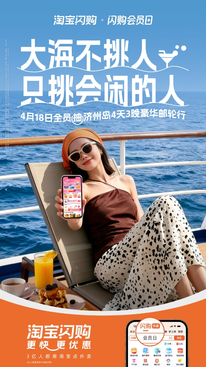 4月17-18日,上淘宝闪购搜【不开玩笑】或点击【跳转链接】,抽济州岛4天3晚豪华邮轮行。还有免单卡和1对1急送券等更多会员惊喜,速来解锁!🤩