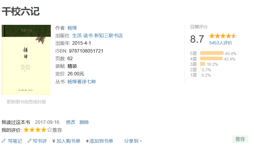 这期节目,我会和大家一起分享扫灰书籍第三本《干校六记》