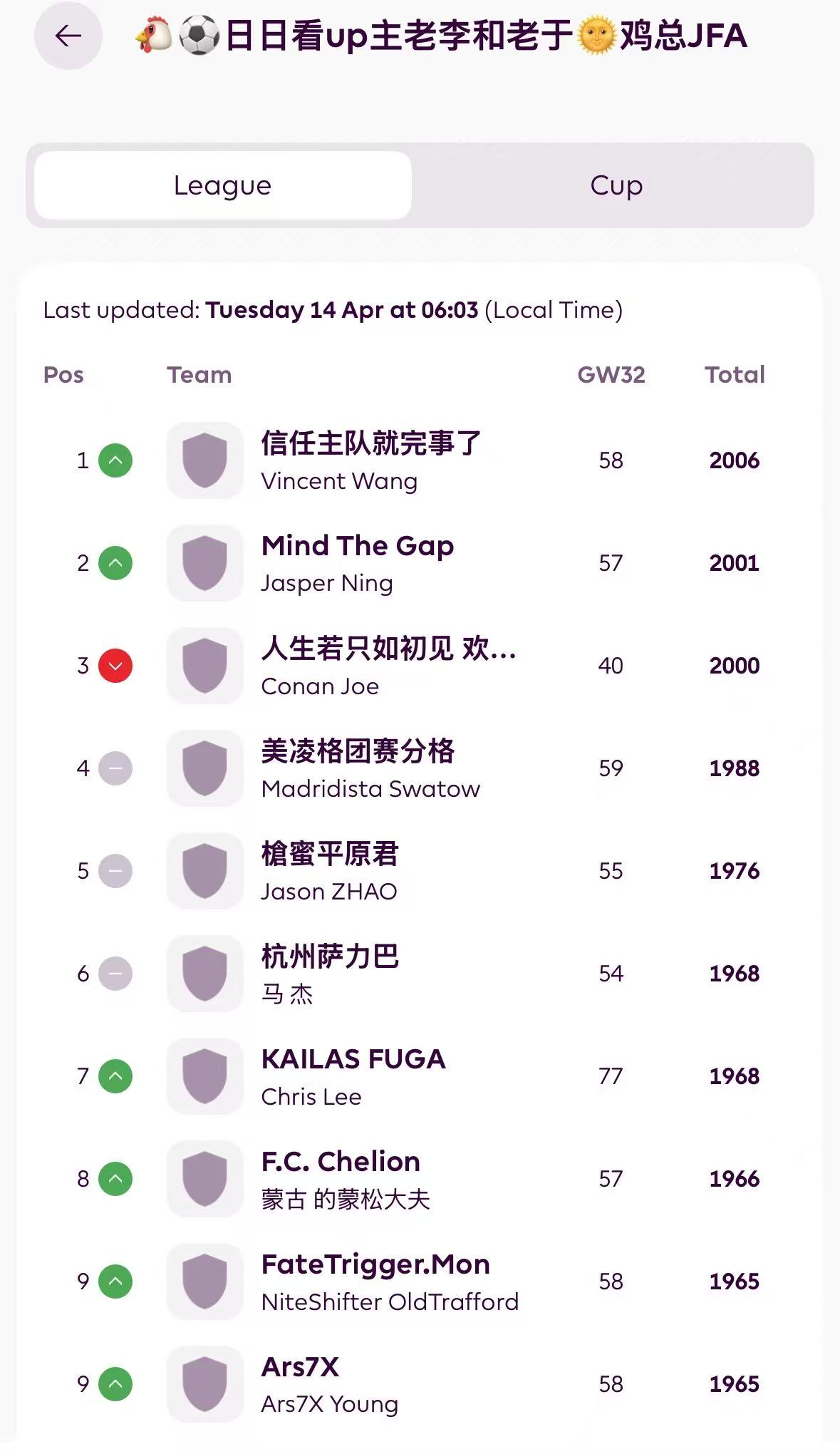 【鸡总积分榜】: