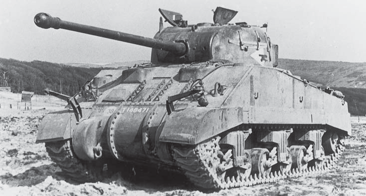 一辆早期改装完成的谢尔曼VC“萤火虫”坦克,车体航向机枪安装口已被装甲板覆盖