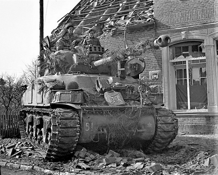 冷溪卫队的谢尔曼混血IC“萤火虫”正在默兹河畔设防阻击德军,摄于1944年12月
