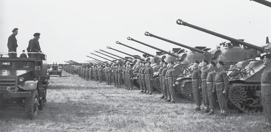 1945年6月,英禁卫装甲师的各型“萤火虫”坦克与车组接受蒙哥马利元帅检阅,可见单车车组为四人