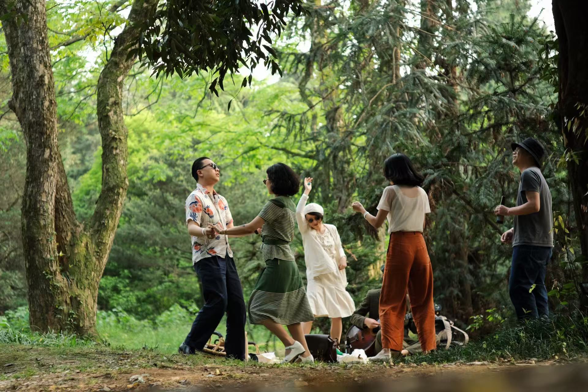 0:04:06|从青岛来上海参加 plant b的人们,在树林里起舞