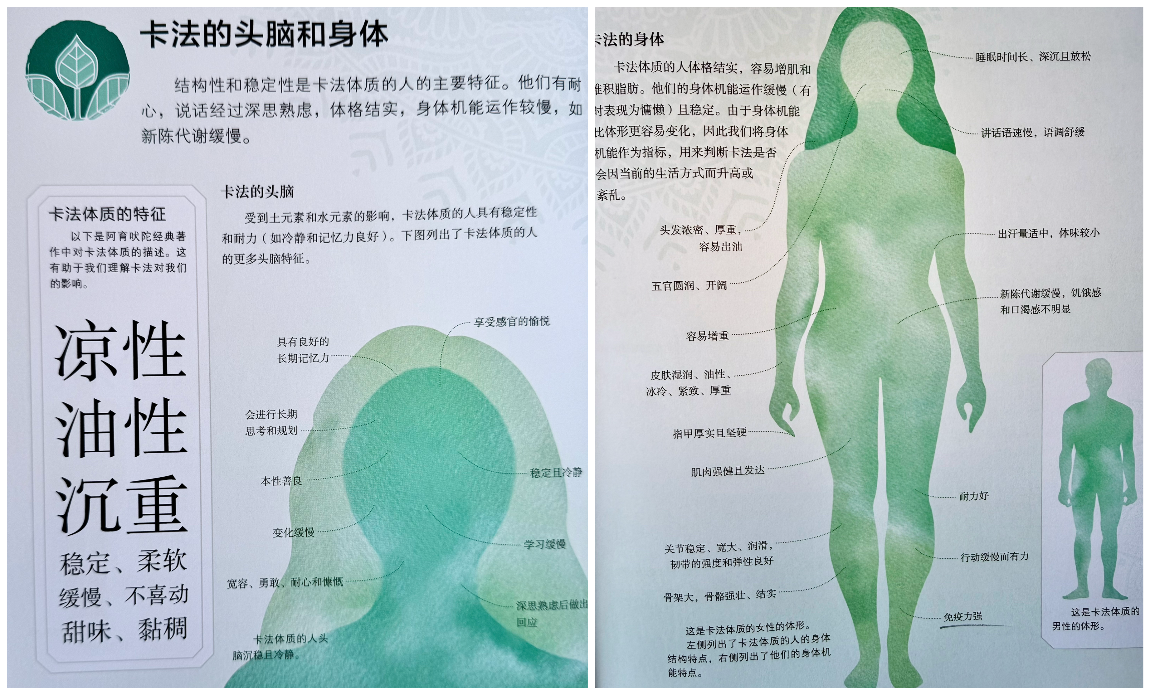 卡法(Kapha): 掌管结构、润滑、稳定、耐力。特质是重、慢、冷、油、稳