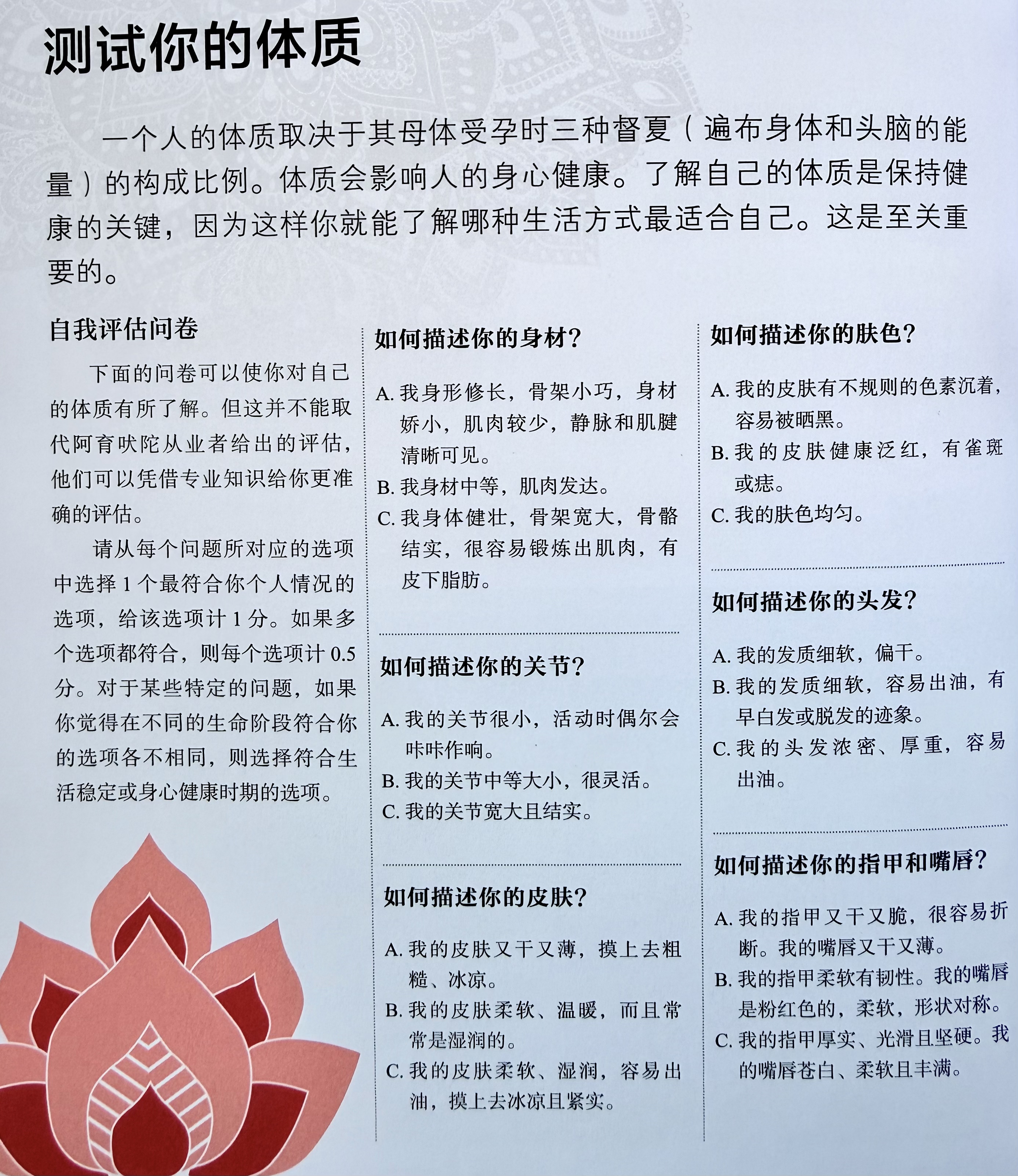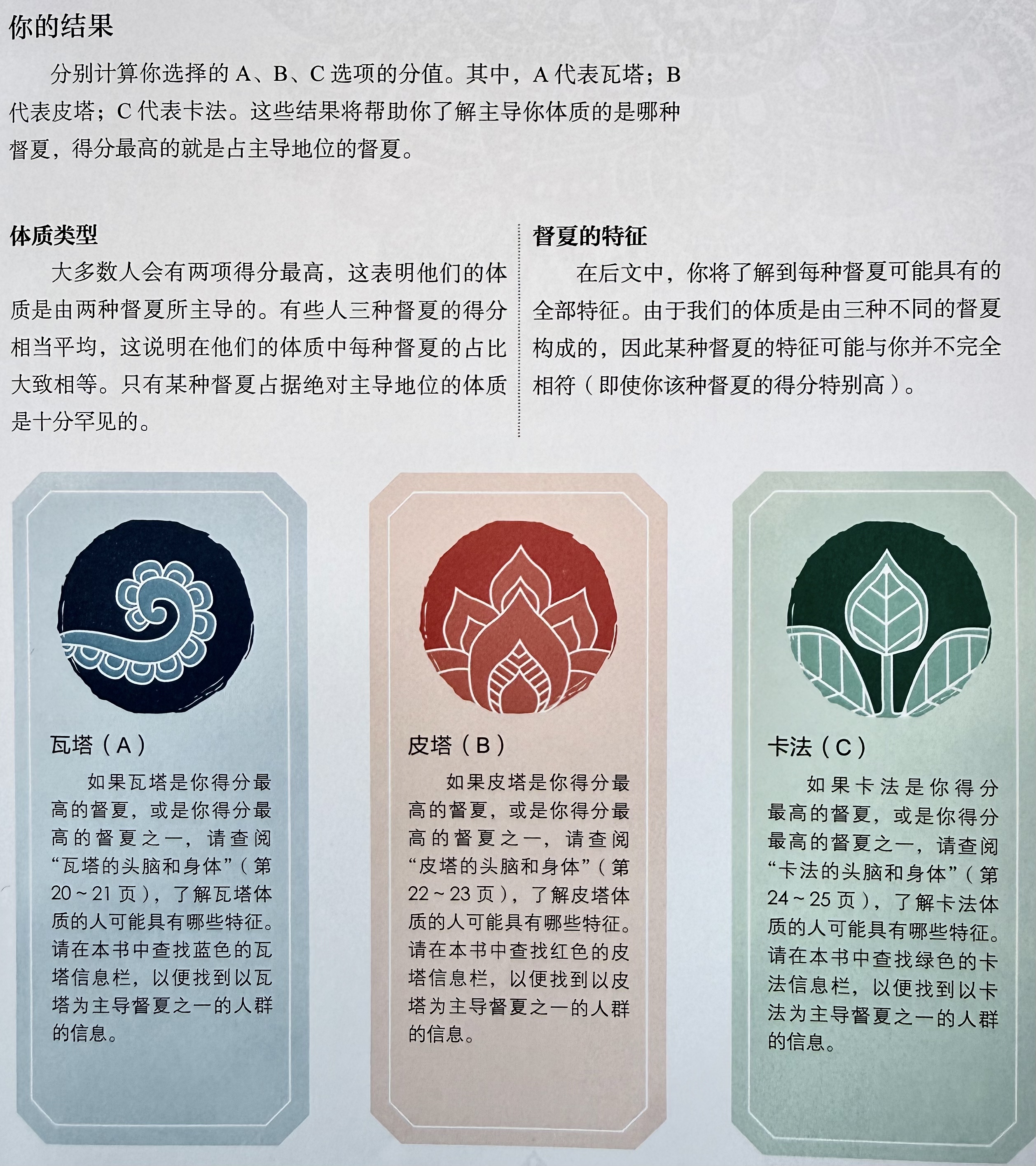 《DK阿育吠陀疗法》给了我们一个全新的视角,和中医一样,印度的生命科学中认为,组成人的能量形式一共分为三种,能量也被称为督夏,所以也说每个人都由三种督夏组成