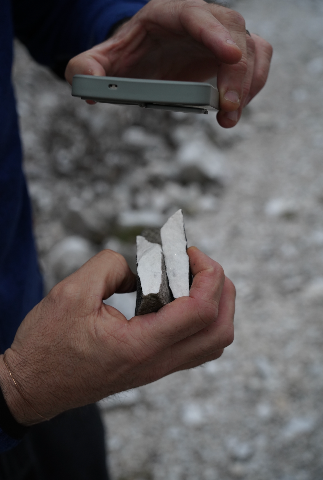 导游敲碎了一块大理石,让我们看横截面里闪耀的亮光
