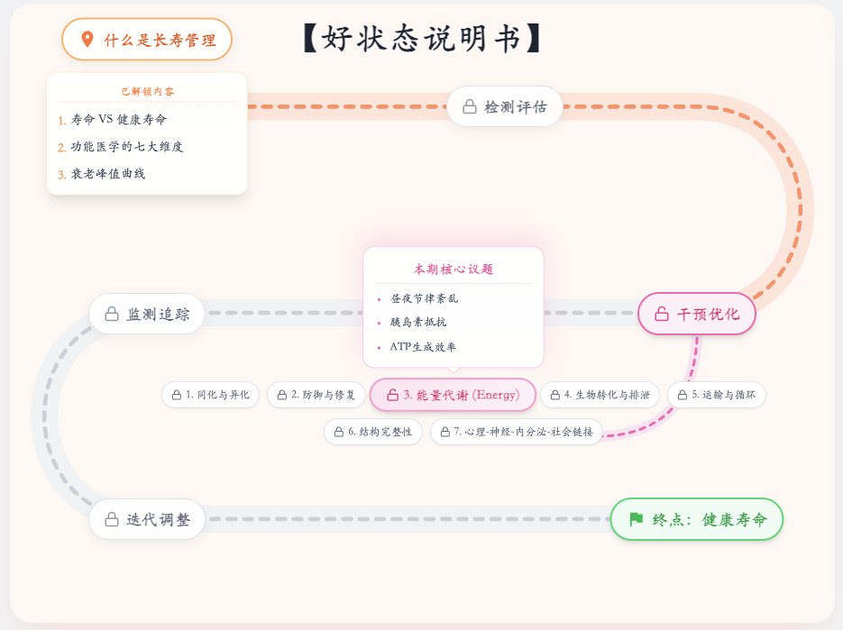 如果 A 组勾选 3 个以上,你可能是系统故障型,需要检修。重点放在:血糖稳定、减内脏脂肪、抗炎、考虑线粒体支持。