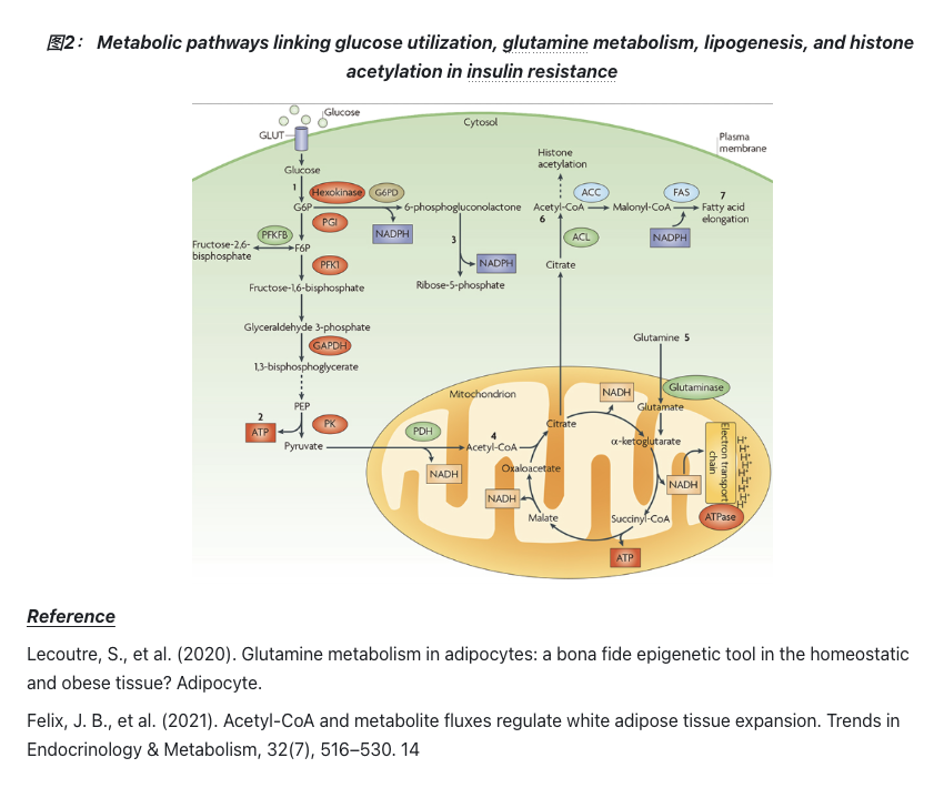 胰岛素抵抗中葡萄糖利用、谷氨酰胺代谢、脂肪生成与组蛋白乙酰化之间的代谢通路联系