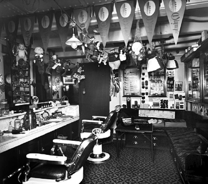 奥林匹克号的二等舱理发店,这是二十年代拍摄的照片