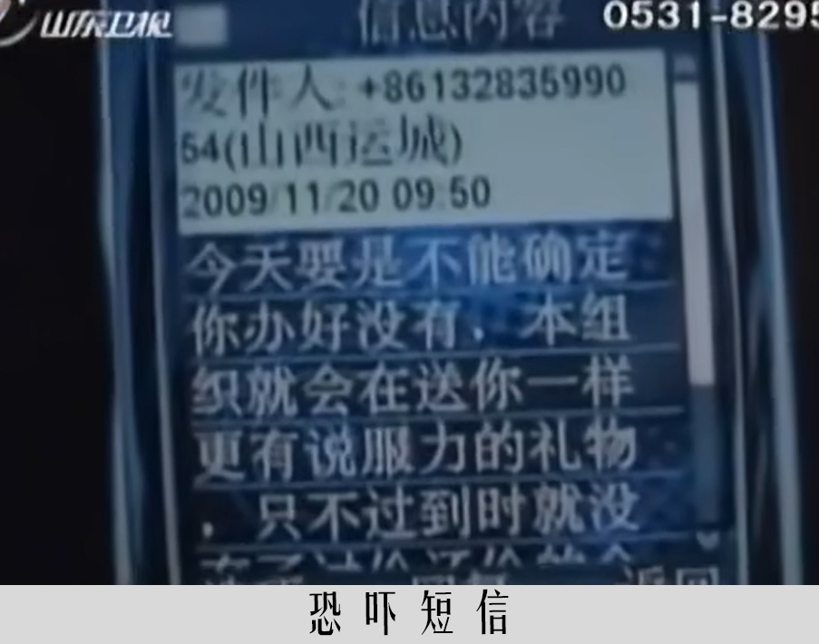2009年12月的一个晚上10点,山西省闻喜县经营加油站的李华勇,目光紧紧锁定在自己手机屏幕上,足足看了整整20分钟!屏幕上显示的是一条来自陌生号码的短信,而内容则让他大为困惑,心中充满了疑虑。 短信中写道:“本组织送给你一个礼物……东西就在距离县城……公里外的建筑工地。你必须去取,否则将后悔终生!”这条短信的内容实在太过诡异,好奇心的驱使下他想要去一探究竟。