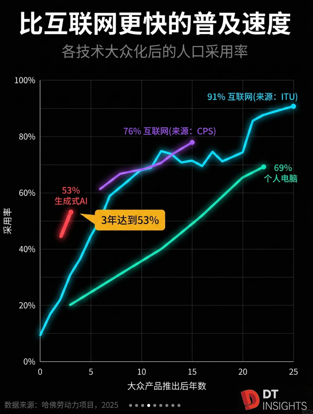 本轮 AI 有着更快的渗透速度: