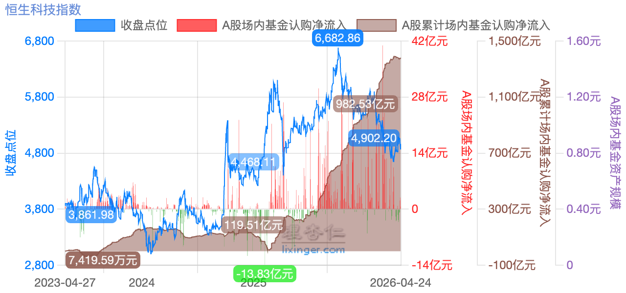 1:13:28 处提及恒生科技的抄底大军,与当年中概互联的抄底大军行为很相似——高点回撤就开始补,A 股审美真的很爱抄底: