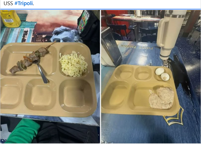这一期,我们从“Today USA”报的几张美军航母与两栖舰,林肯号与的黎波里号上的“士兵餐”照片说起,几根胡萝卜,一块干肉饼,一片灰色加工肉,这到底是日常的伙食还是所谓的Midrats。。。我们来说一说美军舰艇上的士兵与军官饮食的区别,军官餐真的就完全不同吗,而又为什么需要自己付费?