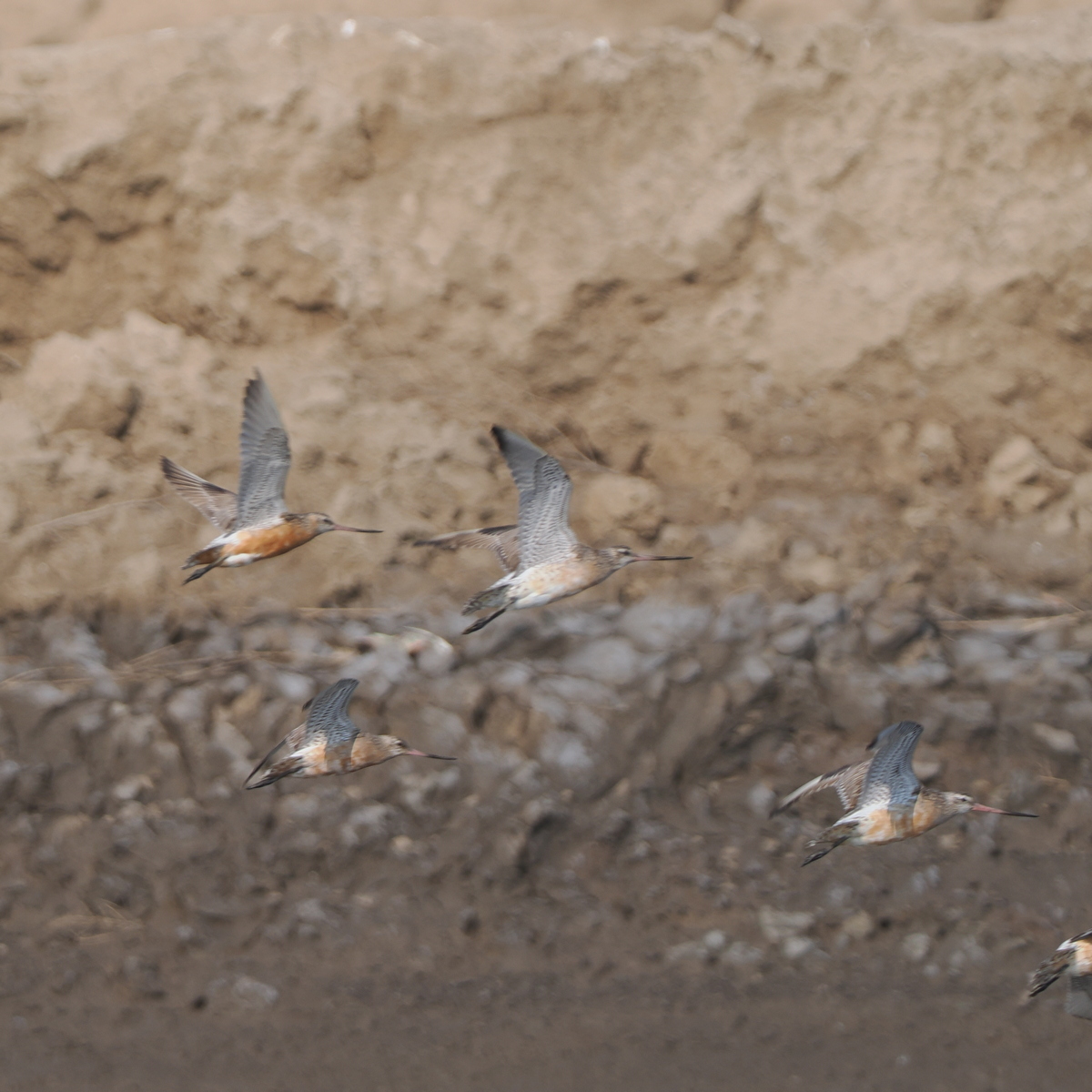 斑尾塍(chéng)鹬(yù) (英文名:Bar-tailed Godwit,学名:Limosa lapponica),是鸻形目丘鹬科塍鹬属的鸟类。别名: 斑尾鹬,以其长而略微上翘的双色喙闻名。繁殖季节时,雄鸟呈现深砖红色的下体,雌鸟则为较淡的橙色;非繁殖季节整体为灰褐色,腹部白色。主要分布于北极圈内的苔原地带,如远北欧、西伯利亚北部和阿拉斯加,冬季则迁徙至温带至热带的海岸线,如欧洲南部、非洲、东南亚、澳大利亚和新西兰。