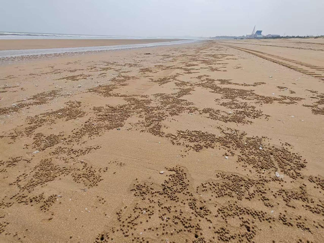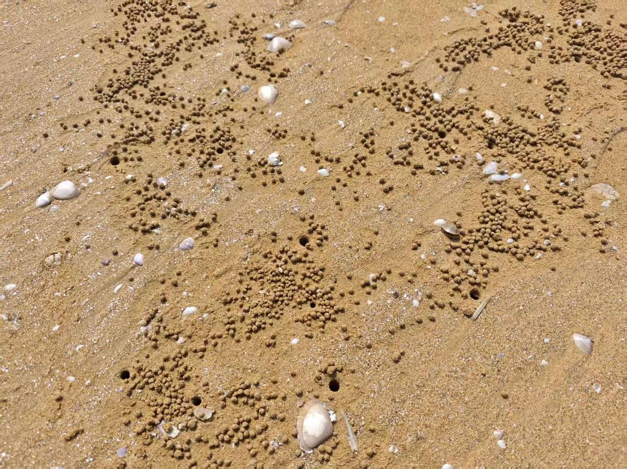 一望无际的沙滩上 都是小螃蟹(?)留下的小沙球阵列