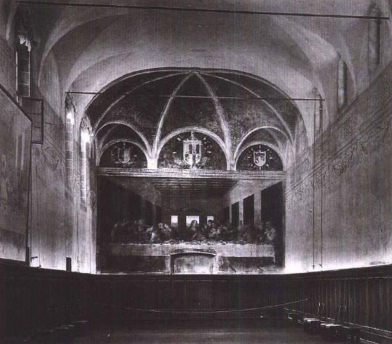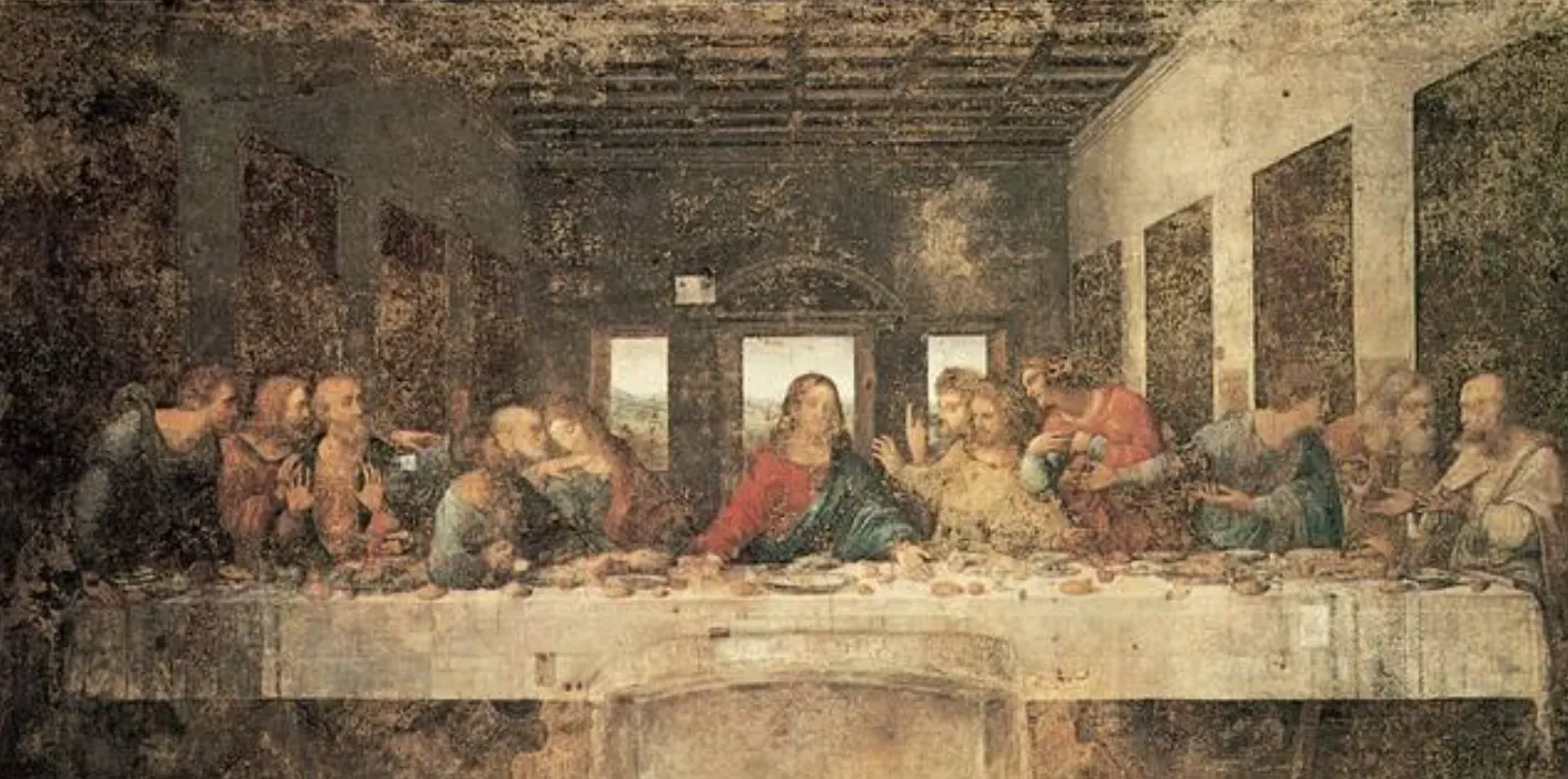 图片源自贡布里希《艺术的故事》,米兰的圣玛丽亚慈悲修道院的餐厅,墙上有莱奥纳尔多的《最后的晚餐》