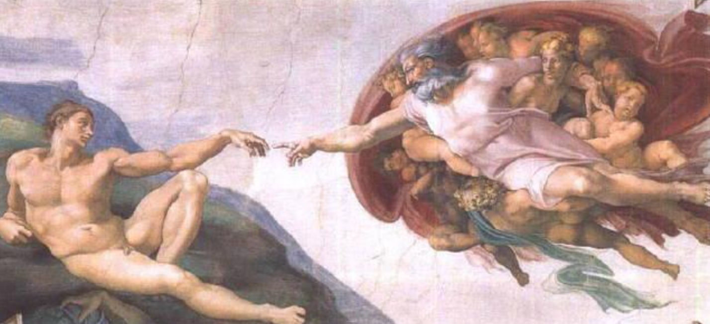 图片来自贡布里希《艺术的故事》,米开朗基罗,创造亚当,上图的局部