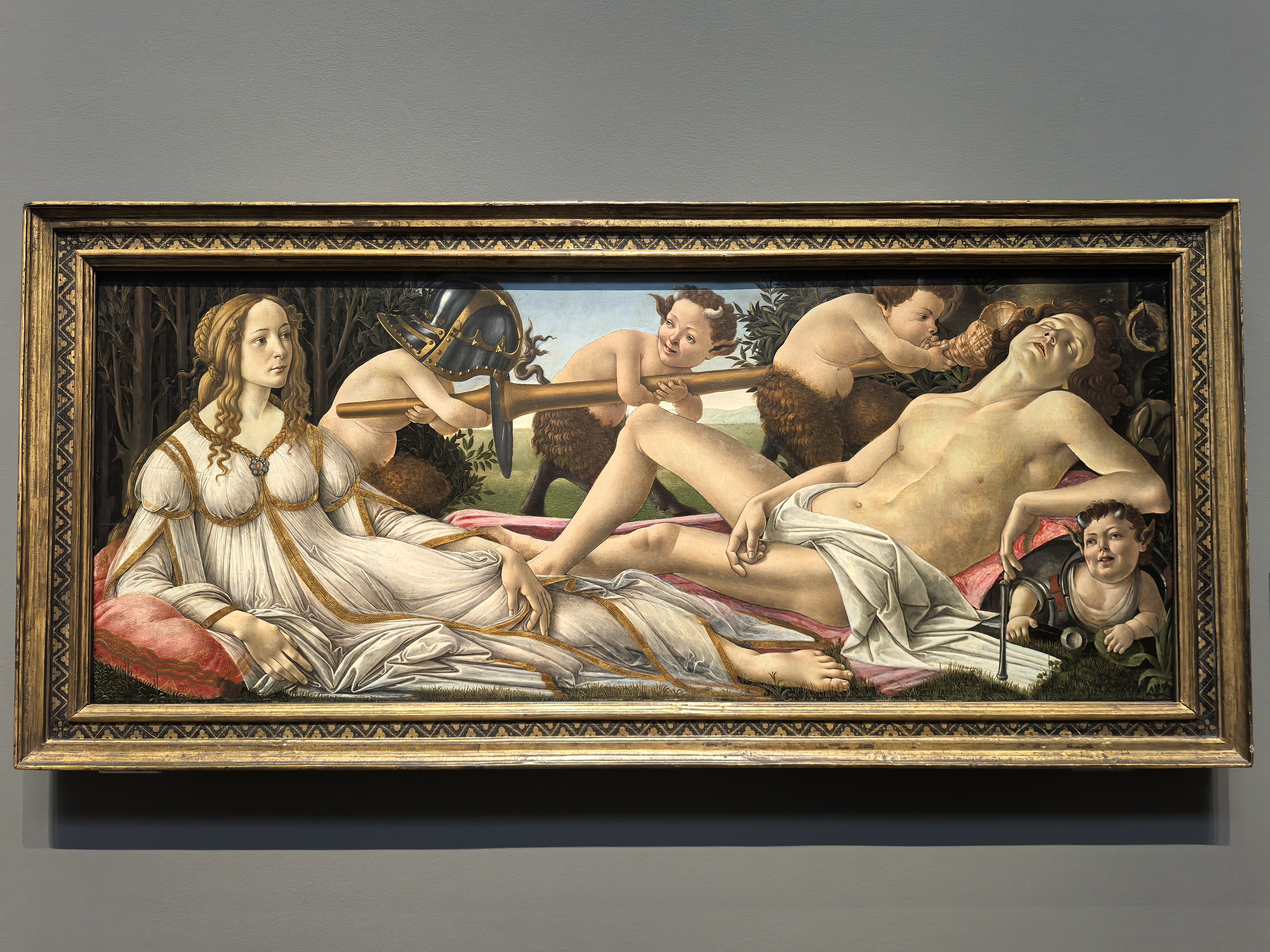 主播自摄,波提切利,战神与维纳斯,约1485年,蛋彩画于木板上,69.2 × 173.4 cm,National Gallery, Lonodn