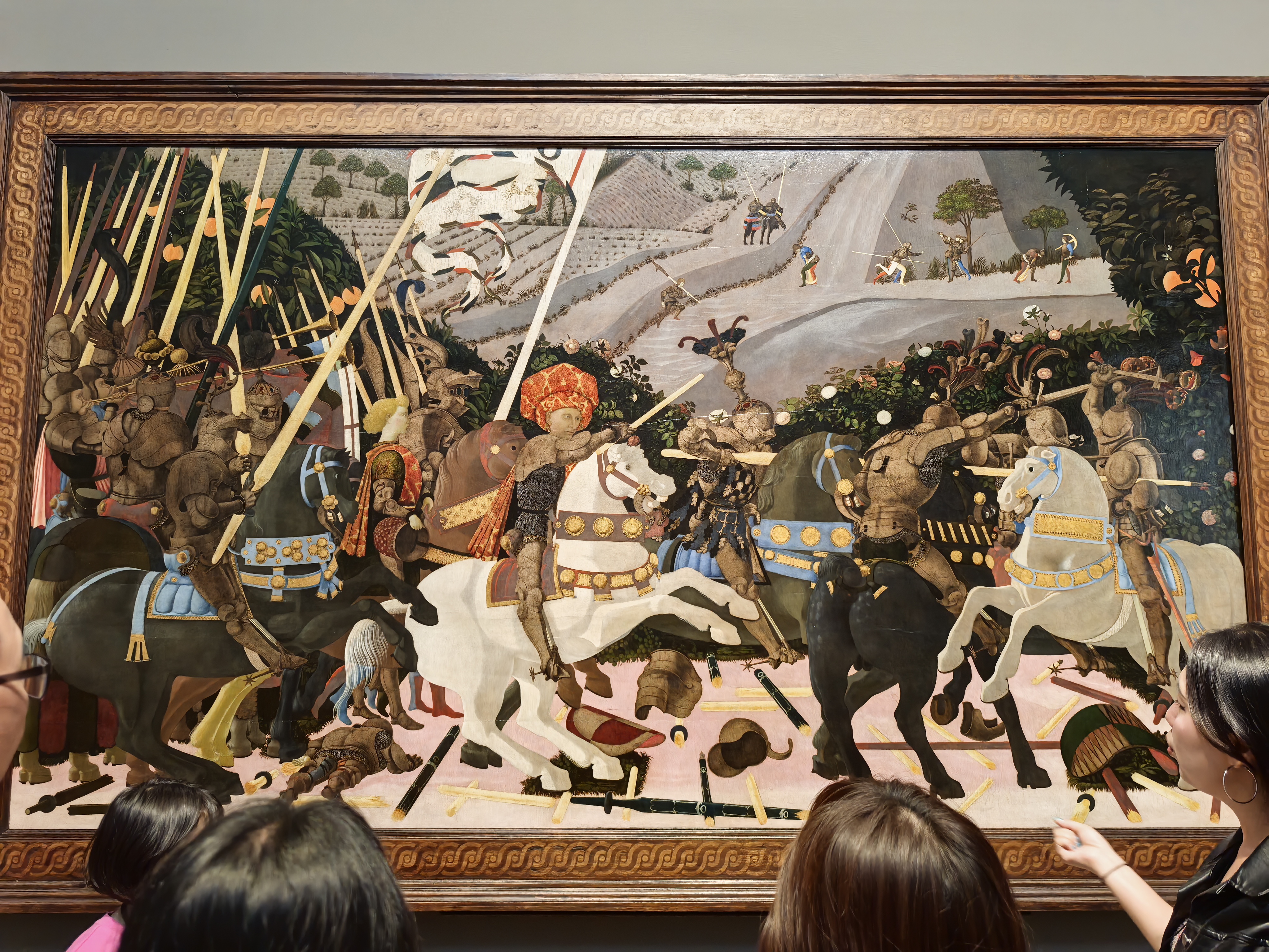 主播自摄,乌切洛,圣罗马诺之战,约1450年,可能出自美第奇宫的一个房间,木板油画,181.6x320cm,National Gallery, London