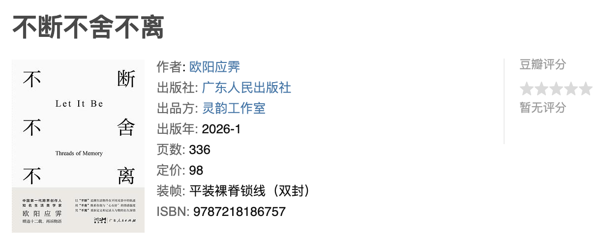 - 书籍:《不断不舍不离》欧阳应霁